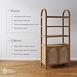 Nathan James Leah Arched Bookcase, 3-Tier Bookshelf with Storage Cabinet Base, Seagrass Door Fronts and Solid Wood Frame, Light Brown