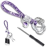 Quality Material: Crystal car keychain band is made of high quality nylon material with good elasticity so you can bend it as you like, wear-resistant and not easy to fade,won't break easily, the key ring is made of zinc alloy and rhinestones, high strength, brightness and corrosion resistance Shiny Design: This Bling key chains women for car keys is designed with glittery and shiny appearance, embellished with some faux crystals and rhinestones, looks chic and fashionable. When the keychain is in the sunlight or under the lamp, it will reflect different light, very shiny and attractive Package Included: Crystal bling car keychain for women includes 1 x 4 inch long keychain, 1 x 0.9 inch x 1.06 inch D-ring, 1 x screwdriver, 1 x 1.33 inch diameter key ring and 3 x small rings, the D-ring can be used to hang your car remote key, the key ring can be used to hang your car key and home key Easy to Use: We give each crystal ring shape keychain car with a screwdriver, firstly unscrew the screwdriver from the d-ring, put it into the key chain, if you have a car remote control key, you can also put it on, finally tighten the d-ring screws, the round small ring can be used to hang other keys Widely Applicable: Sparkly keychains are available in 6 colors: white, pink, purple, black, blue and red, suitable for most kinds of car keys. You can also use these key chains to hang access cards, bus passes, house keys, coin purses and more. In some cases, it can also be worn on the wrist as a wristband