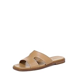 - Women’s slide sandals with thick cutout straps, stitch detailing, and effortless comfort. Leather upper and lining responsibly sourced from Leather Working Group certified tanneries material. Slips on. Open square toe. Flat heel measures 0.50”. Professional clean only. Imported.