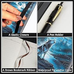 A5 Leather Lined Journal Notebook, 200 Pages Hardcover Executive Notebook for Men Women Office School Note Taking, Thick Writing Paper Daily Journal with Bookmarks/Indexes,Wolf Moon