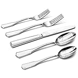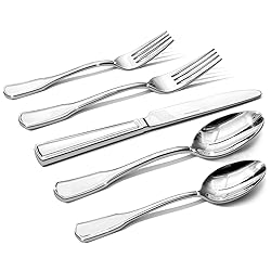 Silverware set for 12: 60-piece silverware set contains 12 dinner forks(8.1''/2.06oz), 12 salad forks(6.9''/1.39oz), 12 dinner knives(9.1''/3.65oz), 12 dinner spoons(7.9''/2.41oz) and 12 teaspoons(6.9''/1.68oz), which can be used for 12 people 18/10 STAINLESS STEEL: Crafted from high-quality 18/10 stainless steel, this silverware set is capable of withstanding daily wear and tear. Offering excellent rust resistance and corrosion protection, it ensures lasting durability and exceptional performance for years to come Easy to Clean & Zero Waste: Smooth surface resists stains, maintains shine—dishwasher-safe for hassle-free care. Great for forks and spoons silverware set, it minimizes maintenance while staying eco-friendly Modern Design: Flatware set for 12 has a sleek, elegant design with smooth lines and square edges, adding a touch of sophistication to any table.Balanced weight ensures stable, comfortable use, while smooth edges prioritize safety—blending style with everyday functionality Versatile for Multiple Occasions: Whether it's a casual family meal, a wedding, or a formal dinner, this silverware set is ideal for all your dining needs. It provides aesthetic appeal and reliable functionality, making it the great choice for parties, gatherings, or special events