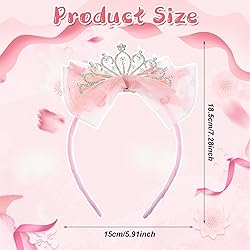 【COLOR & MATERIAL】 This elegant pink tiara headband is crafted from a blend of polyester, zinc alloy, and PVC, ensuring durability while remaining lightweight. Its soft pink hue adds a romantic and elegant accent to any ensemble. This product is intended for adult use only 【ELEGANT TIARA FOR WOMEN】 This tiara is designed to add a regal touch to any adult wearer's style. It is adorned with a delicate tulle bow, making it a perfect accessory for theme parties, weddings, photoshoots, or festive occasions 【COMFORTABLE FIT】 The headband features a flexible and elastic design, ensuring a comfortable and secure fit for most adults. Its lightweight construction allows for extended wear during events 【VERSATILE FOR THEMED EVENTS】 Whether for a costume party, holiday celebration, or as a bold fashion statement, this hair accessory adds a fantastical and eye-catching element to your look 【A UNIQUE GIFT FOR HER】 This tiara is more than a hair accessory; it's a thoughtful and unique gift for the women in your life to celebrate milestones, bachelorette parties