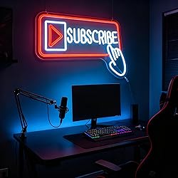 - Jesalah Subscribe Neon Sign – Ignite Your Creative Space! This bold red-and-white LED sign combines a glowing play button triangle, "SUBSCRIBE" text, and an interactive hand cursor design – a must-have for: Content Creator Studios: Elevate your brand identity and remind viewers to engage with your channel. Gaming Setups: Add a professional touch to live-stream backgrounds. Modern Home Offices: Boost motivation with dynamic decor that sparks inspiration. Crafted for simplicity, the 30x43cm lightweight design comes with a complete hanging kit (60cm chain + hooks/screws) for quick installation on walls, desks, or shelves. Energy-saving LED technology delivers vibrant colors with low power consumption, while the durable silicone tube ensures 50,000+ hours of lifetime. Whether you’re a streamer building your community or a fan supporting your favorite creator, this neon sign is more than decor – it’s a statement. Jesalah empowers your voice without saying a word!