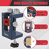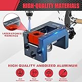 Complete Dowel Jig Kit: This versatile doweling jig kit includes three hardened steel bushings (1/4", 5/16", 3/8") for drilling precise holes in a variety of sizes. Whether you're crafting cabinets, tables, or shelves, this kit is designed to meet all your doweling needs Effortless Operation: With an adjustable clamp (0.4" - 2"), this drill guide for straight holes can be easily used on boards of different thicknesses. Whether you're building T-joints, L-joints, or edge joints, dowel jig simplifies the process and ensures accuracy every time Ultra-Precise Alignment: Self-centering dowel jig is designed to guarantee perfect perpendicular holes. The adjustable guide locks securely in place, eliminating movement and ensuring accurate hole placement. Laser-etched millimeter and inch scales provide precise measurements Robust Metal Construction: Built from high-quality anodized aluminum, this dowel jig offers exceptional durability and resistance to wear. The sturdy metal frame holds your workpiece securely, and the clear, laser-etched markings ensure easy reading for precise measurements Multiple Applications: Perfect for creating precise dowel joints in furniture construction, cabinet making, mounting railings, and custom woodworking. A must-have tool for professionals, DIY enthusiasts, contractors, and hobbyists, ensuring strong, accurate joints in various woodworking projects.