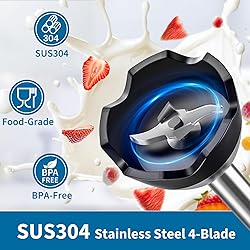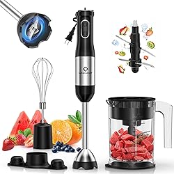 4-IN-1 HANDHELD IMMERSION BLENDER SET: This powerful immersion blender handheld comes with a stainless steel 4-leaf blade, stainless steel horn knife, 1000ml chopper, and storage rack. Perfect for quickly preparing a variety of foods with ease. POWERFUL & FAST: The 800W copper motor and stainless steel blades in this hand blender easily blend and chop tough ingredients, delivering ultra-smooth results in seconds. Quickly make juices, soups, sauces, and more. PRECISE SPEED CONTROL: With 20 speed settings and turbo mode, this emulsion blender handheld offers full control over your blending speed. Whether blending, chopping, or mixing, you’ll achieve the perfect texture every time. SCRATCH PROTECTION: The food-grade blade guard prevents scratching your cookware while reducing suction and splashing. Keep your kitchen clean and make cleanup effortless with this immersion blender handheld. ERGONOMIC DESIGN & EASY CLEANUP: The non-slip handle ensures a stable grip even with wet hands. The detachable parts of the hand blender are easy to clean, and the included storage rack keeps everything organized for easy storage. WHY CHOOSE LINKCHEF: LINKChef immersion blender is made from BPA-free plastic, baby-grade silicone, and 304 stainless steel. We offer a 5-year warranty, lifetime customer service, and 24/7 support for this handheld blender.