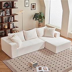No Assembly Boneless Couch: Unlike multi-box sofas that arrive in separate shipments, RUMBALUXY boneless couch is delivered in a single box via FBA. Simply unbox and unfold—no tools, no installation, no missing packages Comfy Modular Sectionals: RUMBALUXY modular sectional couch features a moveable ottoman and a 29.3" deep seat, allowing you to easily rearrange the layout for relaxed lounging, casual family time, or entertainment and social gatherings—all while enjoying enhanced comfort and support Low-Profile Cloud Couch: RUMBALUXY cloud couch features a low-profile(14.4" seat height), legless design that opens up sightlines, creates a clean, minimalist look, and reduces fall risk for kids. Perfect for small apartments, living rooms, playrooms, media lounges, reading corners, or casual family spaces Soft Corduroy Couch: Crafted with high-resilience foam and a soft corduroy fabric that is wrinkle-resistant, stain-resistant, and wear-resistant, RUMBALUXY boneless sofa offers lasting comfort without a rigid frame. The frame-free design helps reduce bumps and impacts, making it a safe, comfortable choice for homes with kids Low Seat Height & Size Notice: With a 14.4" seat height, RUMBALUXY low-profile boneless couch is ideal for relaxed lounging, families with kids, and users who prefer floor-level seating, but may not be suitable for those who prefer higher or firmer seating. Due to foam rebound, dimensions may vary slightly after unpacking; please allow up to 72 hours for the sofa to fully expand and return to the pictured size. If you have any concerns, please email us directly—we will provide effective solutions ASAP