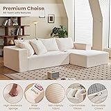 108" L-Shaped Boneless Couch, Modular Sectional Sofa with Moveable Ottoman, Corduroy Cloud Couches for Living Room, No Assembly, Ship in a Box, Beige