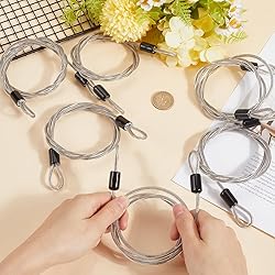 - GORGECRAFT 6Pcs 100cm Security Steel Cable 4mm Safety Cable Lock Stainless Steel Wire Clear Coated Luggage Lock Wire Rope with Double Loops Bicycle Locking Rope for Outdoor Gate Bicycle Furniture Lock Product Specification: Material: Stainless Steel, Plastic Color: Stainless Steel Color Size: about 1000mm long, 4~20mm in diameter, hole: 20.5x10.5mm. Package Included: 6pc stainless steel wire rope Feature: Safety Cable Lock: This security cable with loops features a double loop design, ideal for hanging and securing, and can be attached to cable locks, padlocks, door locks or clips, etc Easy To Use: Quick and Easy To Use without any tools, string the items together with the wire rope, then lock it. for most locks, such as U locks, Padlock, and Disc locks Wide Applications: Stainless steel wire ropes aresuitable for all padlocks, U-locks, bicycle helmet locks, backpack straps, etc. As wire tether for luggage, bags, suitcases, purses. The wire cable also can be used for hanging a variety of items such as flags, light strings, photo walls and other decorations
