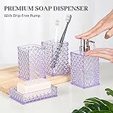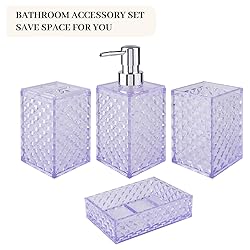Bathroom Accessory Set, 4 Pcs Plastic Bathroom Set Include Soap Dispenser, Soap Dish, Toothbrush Holder, Mousewash Cup, Modern Bahtroom Décor Set, Space Save for Bathroom(Light Purple)