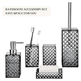 Bathroom Accessory Set, Grid Pattern 5 Pcs Plastic Bathroom Set Include Toilet Bursh, Soap Dispenser, Soap Dish, Toothbrush Holder, Mousewash Cup, Modern Bahtroom Décor Set(Dark Grey)