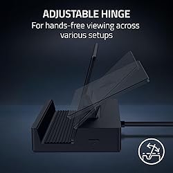 FULLY LOADED 6 PORT DESIGN — Go beyond normal handheld gaming. Play on the big screen with HDMI 2.0, add more controllers or devices with three USB A ports, and enjoy stable wired performance with a 1 GB ethernet port ADJUSTABLE HINGE — Use the dock as a display stand for a smartphone or tablet; plug in essential peripherals, adjust it to the desired (45 / 75) view angle, and get back to it LIGHTWEIGHT, PORTABLE, AND DURABLE — Made for gamers on the go, the dock’s collapsible design is simple to set up and pack up, while its solid aluminum chassis is geared to withstand the wear and tear of travel 100 W POWER DELIVERY WITH PASSTHROUGH CHARGING — Enjoy zero device downtime and maximize gameplay; conveniently charge and continue gaming thanks to passthrough charging with 100 W power delivery POWERED BY RAZER CHROMA RGB — Pick the perfect Razer Chroma RGB lighting to get into the gaming mood; switch colors and cycle through several striking effects via a dedicated button 2 YEAR MANUFACTURER WARRANTY — Have confidence in owning the Razer Handheld Dock Chroma with up to 2 years of warranty from Razer