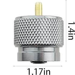 - Product name:camping stove adapter Material: aluminium alloy, brass Size: 26x30mm/1x1.2in Specification: one piece in a pack Thread is standard 7/16 inch, good connection with needle valve, no leakage. No need other more operation, just release and connect the gas to start working.