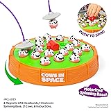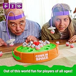 - Prepare for liftoff! Turn on the spinning farm base to activate the roaming cows. Each player wears a magnetic UFO headband and uses only their noggin to “abduct” as many cows as possible—no hands allowed! The player who beams up the most wins eternal bragging rights. This is what 2 player board games should aspire to be: fast, chaotic, and moo-vingly hilarious. Looking for kids games that everyone can enjoy? With its alien invasion theme and wacky spinning cows, Cows in Space is as fun to watch as it is to play. Whether it’s a family reunion, weekend at Grandma’s, or just a lazy Sunday, it brings generations together through laughs and cow chaos. Not your average board game, this is an all-out spectacle. Reflexes, agility, and a sense of humor are your superpowers. The tactile joy of hovering your UFO makes it one of the top classroom games for indoor recess and rainy days. Teachers and parents love how it gets kids moving, thinking, and giggling—no screens required. Quick setup and 10-minute rounds make it perfect for birthday games, kids party games, or spontaneous sleepover stuff. It’s also a great pick for Family game night, birthday games for kids party, and wild weekend competitions. Shopping for kids gifts, funny gifts, or fun gifts that people will actually play? This one's got universal appeal—from cow-obsessed kids to coworkers with desk toys. It even earns its spot as one of the best kids gifts around. Compact enough to be a travel game, it’s perfect for road trips, hotels, and space-saving fun. Whether at home or across the galaxy, Cows in Space is one of the BEST GAMES in the universe. So grab your headband and get ready for lift-off—let the moo-n mayhem begin!