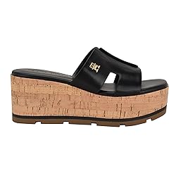 - The Tommy Hilfiger Women's Heliena sandal covered in cork and set on a stable platform and wedge will inspire you to stride with confidence and style whether you're on the boardwalk or sand.