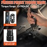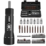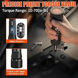 49 PIECES SCREWDRIVER SET: The 1/4”Torque Screwdriver Set Includes The 1* Torque Screwdriver; 1* 1/4'' Extension Bar; 1-Piece Ad; 4-Piece Phillips Bits: (Ph0/Ph1/Ph2/Ph3); 6-Piece Slotted Bits: (Sl3/Sl4/Sl5/Sl6/Sl8/Sl11); 8-Piece Torx Bits: (T6/T8/T10/T15/T20/T25/T30/T40); 4-Piece Sae Hex Bits: (5/64, 3/32,7/64, 3/16); 7-Piece Metric Hex Bits: (H2mm/H2.5mm/H3mm/H4mm/H5mm/H6mm/H8mm); 10-Piece Long Bits (4-Piece Slotted Bits:Sl4.5/Sl5/Sl7/Sl11; 3-Piece Sae Hex Bits: 3/32,5/32, 7/64; 2-Piece Torx Bits:T15/T20; 1-Piece Phillips Bits:Ph2); 7-Piece 1/4"Sockets(4mm, 4.5mm, 5mm, 5.5mm, 6mm, 7mm, 8mm); HIGH ACCURACY SCREWDRIVER - Coobeast preset torque screwdriver offers a torque range of 10-70 in-lbs with a torque increment of 1 in-lbs. Accuracy of +/- 2 in-lbs. Clearly main display screen and scale are easy to read. Strong identification redline alignment scale line combines the bottom subscale value to provide the final value and avoid read errors. High accurate and easy to operate. SOUND SINGAL - Reaching the preset torque will send a "click" signal while using this preset torque screwdriver. A clear sound signal prevents over-torque and provides great help during working can be a reliable partner. EASY TO PRESET VAILUE - Unlock the adjusting wheel by pulling it down and rotating the handle to the desired torque value, the full circle is 10lb. The readout is according to the position of the red line in the main screen with the minute scale value that the triangular pointer points to then locks by pulling the wheel up to finish torque value set. COOBEAST SERVICE - This torque screwdriver is heavy-duty quality and versatile and used for maintenance, firearms, tools, bike repairing and scope mounting. Also our brand provides quality assurance, feel free to contact us if encounter difficulties in use or product issues. We provide practical protection and service for your choice.