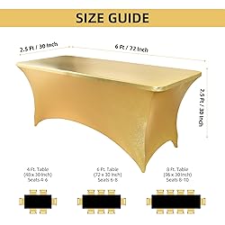 - Introducing the ultimate solution for your table dressing needs - our high-quality, stretchy spandex table cover! Designed to fit standard, folding, banquet, and rectangular tables perfectly, this table topper is a must-have for any event, from birthday parties and weddings to trade shows and festivals. Crafted from a durable blend of polyester and spandex, it boasts exceptional elasticity, ensuring a tight, fitted look that resists wrinkles and stains. Whether you're setting up for a BBQ, cocktail party, or anniversary celebration, our reusable and washable table protector is your go-to for a sleek, professional appearance. Its universal fit makes it ideal for dinning tables, patios, and kitchen setups, offering protection and style in one. Elevate your next event with our stain-resistant, stretchy table cover, and watch as it transforms your space into a high-quality, vendor-approved showcase. Don't settle for less; choose our table topper for a durable, elastic, and stylish solution that stands up to any occasion!