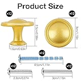 DIMENSIONS: Round cabinet knobs measure 1.18 inches in diameter, perfect for kitchen cabinets, drawers, and dressers PACKAGE CONTENTS: Set includes 12 matching gold-finished cabinet knobs with necessary mounting hardware SINGLE HOLE DESIGN: Easy installation with standard single-hole mounting system for quick cabinet hardware updates VERSATILE USE: Ideal for kitchens, bathrooms, bedrooms, and living room furniture requiring decorative hardware ELEGANT FINISH: Sophisticated gold finish adds a modern, luxurious touch to your furniture and cabinetry
