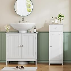 【Great Addition to Your Bathroom】Our small bathroom storage cabinet has lots of storage with 1 deep drawer and 1 shelf hidden with a door, which fit nicely between sink and toilet without taking up too much space. Lower section can hold extra rolls of toilet paper and a bathroom spray. The drawer is perfect size for wipes, little magazines and your hairbrush. 【One Choice, More Possibilities】Using it to store your coffee maker on top, which has plenty of room inside the cabinet for the coffee and sugar. You can use the bathroom floor cabinet in the kitchen to put your water filter on. Keeping unwanted items in your powder room concealed? Everything is within your control and function is up to you. 【Better Integrate Into Your Home】No matter whatever your home style is, our bathroom cabinet will perfectly match well with it. Designed with aesthetics and functionality in mind, enjoy the striking contrast between the beautiful white finish and silvery knobs. 【Went Together Like A Breeze】You just need to take your time and really look at the directions to make sure you are doing it correctly. Instructions remind you of those for lego’s. Size: 11.8"L*11.8"W*31.5"H. Weight: 19.5 LB. 【100% Satisfaction Service】If you're not satisfied, don't need to return it. Please tell us if you have any issue with our product. Our customer service always has an open ear for your question.