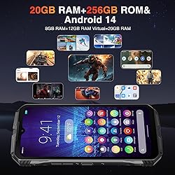 🚴【20GB RAM + 256GB ROM】The DOOGEE Scyber rugged smartphone packs 20GB RAM (8GB + 12GB virtual) and 256GB of storage, providing ample space for your apps, photos, and files. Powered by an Octa-Core CPU, this rugged smartphone ensures smooth multitasking, fast performance, and efficient power, making it perfect for everyday tasks and demanding applications. 🚴【10600mAh Battery & 18W Fast Charging】Equipped with a massive 10600mAh battery, the DOOGEE Scyber rugged phone offers up to 1400 hours of standby, 45 hours of calls, and 15 hours of video playback. The 18W fast charging minimizes downtime, while OTG reverse charging powers other devices. Ideal for outdoor adventures, this unlocked rugged phone keeps you connected and energized in any situation. 🚴【Latest Android 14 OS】The DOOGEE Scyber rugged smartphone unlocked runs on the latest Android 14, offering enhanced privacy and security features to secure your digital life. With smoother performance, personalized interface options, and improved battery management, this Android 14 phone is designed to be your essential smart companion for everyday life. 🚴【6.58" FHD Screen & 50MP Rear Camera】The DOOGEE Scyber android 14 phone features a 6.58” HD+ display for crisp, vibrant visuals. Its advanced camera system includes a 50MP main lens, 5MP wide-angle, and 16MP front camera, perfect for capturing stunning photos and videos. With HDR, AI, Night View, Panorama, and Beauty modes, this rugged smartphone delivers exceptional image quality in any light. 🚴【IP68/IP69K & MIL-STD-810H】The DOOGEE Scyber rugged smartphone is built to withstand harsh environments, featuring IP68/IP69K dust and waterproof ratings, and MIL-STD-810H certification. Its durable design provides 360° protection, making it ideal for hiking, diving, or camping. Designed for outdoor workers and adventure seekers, this rugged phone unlocked is built for a rugged lifestyle. 🚴【2-Year Warranty & Multi-Function】The DOOGEE Scyber rugged smartphone offers peace of mind with a 2-year warranty and a 30-day no-questions-asked refund. It includes dual SIM slots, expandable storage up to 1TB, and supports GPS, GLONASS, Galileo, and Beidou for precise navigation. Quick access is provided by facial recognition and side-fingerprint unlock, with NFC and Google Pay for convenient transactions. 🚴【Please Read Before Purchasing】The DOOGEE Scyber rugged phone unlocked supports a wide range of network bands, including GSM: B2/3/5/8; WCDMA: B1/2/4/5/8; TDD: B34/38/39/40/41; FDD: B1/2/3/4/5/7/8/18/19/20/25/26/28A/28B/66. Support EDGE/GPRS. Please confirm the carrier before purchasing!