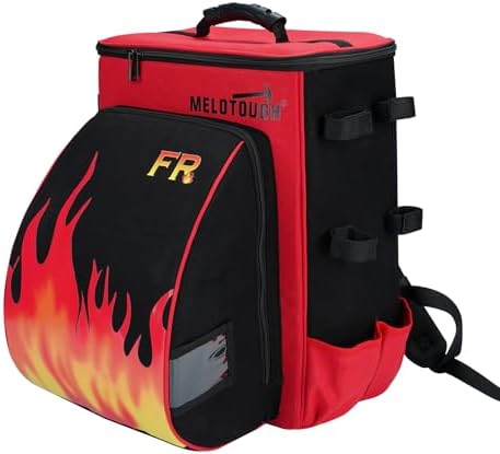 MELOTOUGH Welding Backpack Fire - Resistant Fabric 32.56L Large Capacity Welding Bag for Tools and Helmet Multipurpose Welder Backpack with Multiple Storage and Extra Stickers (Red)