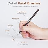 15 PCS Detail Paint Brush Set – This miniature paint brush set includes 15 precision brushes in a variety of shapes and sizes: Rounds (20/0, 10/0, 5/0,3/0, 0, 1, 2), Liners (5/0, 3/0, 2/0), Flats (0, 1), Filbert (2), Angle (2), and Tight Spot (4/0). Perfect for all types of fine detailing and miniature painting needs. A must-have detail paint brush set for model, craft, and acrylic painting Premium Quality Craftsmanship – Each detail paint brush is made with high-grade synthetic bristles secured by double-crimped ferrules, preventing shedding. Smooth birch handles provide balance and durability, making these fine paint brushes for detail ideal for both beginners and professionals. Ergonomic Triangular Handle – Designed for comfort and control, these miniature paint brushes reduce hand fatigue during long sessions. Non-slip grip prevents rolling, giving you accuracy for miniature painting kits, hobby paint supplies, and precision craft work. Ideal for All Mediums & Fine Detailing – These detail paint brushes work flawlessly with acrylic, watercolor, and oil paints. Suitable for paint by number kits, miniatures, models, figurines, nail art, face painting, and other intricate crafts that demand accuracy and control Protective Nylon Brush Case – Comes with a portable, zippered nylon case that protects and organizes your detailing brush set. The case doubles as a stand, keeping your paintbrushes ready to use—making it the perfect gift for artists, hobbyists, and anyone into miniature painting or craft projects.
