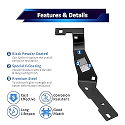 Fitment: Fit Ram 2500/3500 2019-2024 Strong Carring Capacity: Designed for heavy-duty lamps, firmly fixed, so that your lights can remain stable at high speeds and under adverse road conditions Durable Material: Made of high-strength Heavy Duty steel, which ensures that the hood light bracket maintains excellent stability and long service life in all kinds of harsh environments Multi-purpose compatibility: Adapted to a variety of work lights, flexible collocation, to meet the needs of off-road, camping, night driving and other scenarios Package: 1 x Driver Side Hood Light Mount, 1 x Passenger Side Hood Light Mount