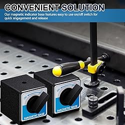 - Features: Operating this magnetic base is easy. With the swift on/off switch, you can engage and release the magnet quickly and effectively, adding to the overall functionality and user experience. With the classic black color, our magnet base is as visually appealing as they are practical. The sleek and elegant design adds a touch of sophistication to your workspace, making these bases a nice blend of functionality and style. Specifications: Material: steel Color: black Size: about 2.7 x 2.2 x 2 inches/ 6.8 x 5.5 x 5 cm Package includes: 2 x Magnetic base Notes: Manual measurement, please allow slight errors on size. The color may exist a slight difference due to different screen displays. Swallowing risk may exist, please keep away from little kids.
