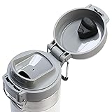 - TAPON ANTIVÁSCOS: Este tapón de acción de gatillo hace que esta termo de viaje sea a prueba de derrames y fácil de usar con una sola mano. El tapón está diseñado con un botón que abre la boquilla superior. Puede meterlo en su bolsa de trabajo sin preocupaciones.