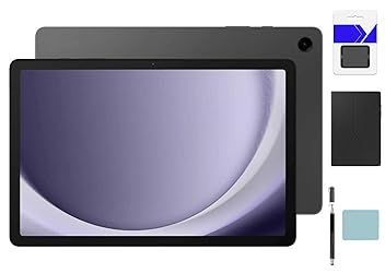 - Meet your go-to device for on-the-go family fun — Galaxy Tab A9+. A bright, engaging 11" screen* is perfect for every family member to do what they love. Whether they’re enjoying a show, unwinding with a game or catching up on schoolwork or day-to-day tasks, an upgraded chipset makes every experience feel smooth and easy. You can even open multiple apps at the same time and get all your everyday tasks done quickly. Use it for hours without worrying about power, and keep everything you love together with plenty of storage space. Plus, the preloadedMeet your go-to device for on-the-go family fun — Galaxy Tab A9+. A bright, engaging 11" screen* is perfect for every family member to do what they love. Whether they’re enjoying a show, unwinding with a game or catching up on schoolwork or day-to-day tasks, an upgraded chipset makes every experience feel smooth and easy. You can even open multiple apps at the same time and get all your everyday tasks done quickly. Use it for hours without worrying about power, and keep everything you love together with plenty of storage space. Plus, the preloaded Samsung Kids app* provides a safe digital environment for your little ones to happily learn and play. Give your family a great all-in-one Tab that perfectly meets all their everyday needs without taking a bite out of your wallet — Galaxy Tab A9+. SAMSUNG Galaxy Tab A9+ Book Cover (Black) Included Tigologybundle Accessories Included: 64GB Memory Card, 2-in-1 Stylus Pen and Cleaning Cloth Screen: 11 Inches LCD 1920 X 1200 (WUXGA) 90Hz Display Processor: Qualcomm Snapdragon 695 (SM6375) Storage: 64GB RAM: 4GB Color: Graphite Operating System: Android 13 Voice Assistant Built-in: Google Assistant, Bixby Wireless Connectivity: Bluetooth, Wi-Fi Expandable Memory Compatibility: microSD USB Ports: 1 x USB-C Battery Capacity: 7040 milliampere hours Front Facing Camera Megapixels: 5 megapixels Rear Facing Camera Megapixels: 8 megapixels Product Weight: 16.96 ounces Dimensions: 10.12x 6.64x 0.27 inches