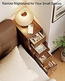 Narrow Nightstand with 3 Drawers,Solid Wood Narrow Bedside Table Walnut, Modern Skinny Nightstand for Bedroom(Fully Assembly)