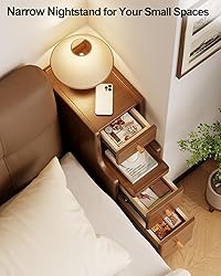 【Narrow Nightstand 】Got an awkward gap too narrow for regular furniture but too valuable to waste? At 7.87" wide, this small nightstand transforms dead zones—nestling snugly between beds, recliners, or bathroom vanities. Lightweight and adaptable, it revives tight spots in bedrooms, entryways, or dorms—turning wasted inches into functional style. 【Durable and Strong】Durable and Strong: Crafted from high-density rubber wood, this narrow nightstand is built to last. This small nightstand is designed to withstand the test of time 【Small Space Storage】This small nightstand features 3 smooth-gliding drawers crafted from premium solid wood. Keep bedside essentials organized yet instantly accessible in your narrow nightstand without floor space compromise 【Thoughtful Design】This narrow side table comes with circular wiring holes on the back, allowing for easy organization and charging of your devices. The solid wood slides ensure smooth, quiet operation of the drawers, making this narrow end table with storage a practical and stylish addition to your home 【Easy to assemble】We've made installation of this nightstand as easy as possible. If you have any questions or concerns, our professional customer service team will be happy to help you out