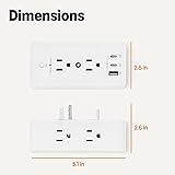 Amazon Basics Wall Mount Surge Protector Power Strip with 9-in-1 Hub, 1080 Joules, 6 AC Outlets, 1 USB-A and 2 USB-C (20W Fast Charging), White
