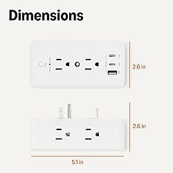 IN THE BOX: Surge protector power strip for charging multiple devices at a time; protects against surges (1080 joules) 9-IN-1 HUB: Turns 1 outlet into 6 AC outlets, 2 USB-C ports, and 1 USB-A port; the 3 USB ports share 20 watts max SAFETY: Over-heat, over-voltage, over-current, over-charge, over-load, short-circuit, and high-voltage (grounded) protection USER-FRIENDLY DESIGN: Widely spaced 1.6 inch center-to-center outlets; unit can be wall mounted. Fits standard outlets with either 1.53 in (38.8 mm) or 1.68 in (42.7 mm) spacing—simply slide the pin to match your outlet configuration. DURABLE: Housed in a fireproof shell for added safety 20W Fast Charging - Charges iPhone 17 from 10% to 50% in just 20 minutes via USB-C