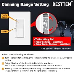 BESTTEN 10 Pack 0-10V LED Dimmer Light Switch, Super Slim Low Voltage Dimmable Switch for Dimmable LED Lights, Single-Pole or 3-Way, Screwless Wallplate Included, White