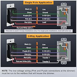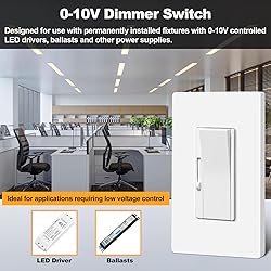 Works only with 0-10V controlled dimmable LED lights and drivers Only 1 dimmer switch can be installed in a 3-way circuit. Do not use with fans Exceptionally quiet and smooth, yet positive rocker switch and slide dimmer to suit different activities Easy to install and use. AC 120V~277V 60Hz input. Single Pole & 3-way low voltage LED dimmer switch for LED lights ETL listed