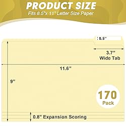 - Manila Folders, HERKKA 170 Pack 1/3 Cut Tab File Folders, Manila Folders 8.5 x 11 Designed for Office and Classroom Use, Letter size