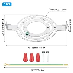 - This lamp mounting bracket kit is designed for various types of lighting fixtures. It works perfectly with the ceiling light plate cover, making installation a breeze. It can be used with most wall lamps, ceiling lamps, chandeliers, corridor lights, outdoor lamps, pendant lights, etc. It is very suitable for use in many scenes such as home, office, store, etc. Specifications: Color: Silver; Material: Galvanized Carbon Steel; Overall Size: 145 x 100 x 16mm / 5.71 x 3.94 x 0.63 inches (L*W*H); Board Thickness: 1.5mm / 0.06 inches; Ground Wire Length: 150mm / 5.9 inches; Packing List: 1 x Ceiling Light Plates (Including Screws, Wiring Caps, Ground Wires) Advantages: Made of thicker galvanized steel, cut and polished, sturdy and durable, not easy to fall off, will not deform, and can support the installation of ceiling lamps weighing up to 22 pounds; The surface of the carbon steel material is galvanized, anti-oxidation anti-rust, and durable; Contains ground wire and a green ground screw, which can be used for quick grounding to more comprehensively protect your electrical and home safety. Instructions: The package contains screws and installation accessories, which are easy to install. You only need to use a household screwdriver to easily complete the installation of the lamp, saving you time and energy. Note: 1. Please disconnect the power supply before installing the lamp. 2. Please confirm the required size before purchasing. 3. Not suitable for ceiling fan installation.
