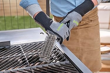 - The Cuisinart Triple Bristle Grill Brush is designed to make grill cleanup quicker and easier. Featuring three vertical rows of durable bristles, this brush covers more surface area with each stroke, saving you time and effort. Its rust-resistant stainless steel frame ensures long-lasting performance, even in tough conditions. Equipped with a stainless steel scraper, the brush effortlessly tackles tough, stuck-on debris for a spotless grill every time. The angled handle provides a comfortable, ergonomic grip, reducing strain during extended cleaning sessions. With a total length of 17 inches, it offers excellent reach for all grill types, including hard-to-access spots. Keep your grilling experience hassle-free with this reliable and versatile cleaning tool.