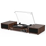 【Dual Speakers Design】The vinyl record player features carefully crafted dual speakers to deliver full, rich sound. The portable design makes this record player an ideal using at home and on the go 【Bluetooth Music Streaming】With Bluetooth music receiver, you can listen to your favorite music anywhere, anytime via a mobile phone connection without cables and wires. The newest Bluetooth 5.3 Version makes the connection faster and more stable 【Record Player with 3-Speed Belt Drive】Vinyl record player with three adjustable speeds: 33⅓, 45, 78, for 7", 10", and 12" vinyl records, also comes with a 45 rpm adapter. The three adjustable speeds make the record player suitable for a wide range of record playback 【Simple Operation Features Vinyl Player】The auto-stop switch protects the record by allowing it to pause automatically when it has finished playing. The simple RCA port allows easy connection of the speakers that come with the turntable. The included USB port allows you to ration your enjoyment of music beyond your records. Combining the above advantages, it will be the best gift for a birthday and Christmas 【Record Player Classic Style】The design of the dial is inspired by the style of the past. It uses elements such as aged textures and vintage fonts. The color palette is soft and simple with a nostalgic effect. Not only can it play music but it is also a tasteful room decoration that evokes memories of times gone by