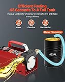 Efficient Fuel Transfer: This fuel transfer extractor pump features a high-speed 3300 R/min motor, delivering up to 10GPM flow rate, with a lift height of 26.2 ft and a suction depth of 9.8 ft. It can fill a tractor in just 43 seconds. Designed for diesel, kerosene, and transformer oil, it’s not suitable for gasoline, motor oil, or other liquids. Its high efficiency and low noise ensure smooth and secure operation, making it an ideal tool for industrial, agricultural, and commercial use. Durable Construction: Our portable fuel transfer pump has a body of cast iron and aluminum alloy for excellent durability and can withstand harsh outdoor conditions. It features an alloy-made impeller and a high-torque motor, allowing continuous operation for 30 minutes for stable and efficient fuel transfer. Self-Sealing Nozzle: This fuel transfer extractor pump has a self-sealing nozzle; press the valve to begin fueling and release to stop. The pump automatically shuts off once the tank is full, eliminating the need to monitor fuel levels. Rich Accessories: Our diesel transfer pump kit includes a 13 ft rubber discharge hose, a 6.6 ft PVC suction pipe, and a self-sealing fuel nozzle. The suction pipe has a metal mesh filter to block impurities from entering the pump during operation. Simple Operation: With a maximum suction height of 9.8 ft and a lightweight design, this fuel transfer pump can be easily mounted on various tank sizes, providing a convenient fuel supply for vehicles, machinery, and more.