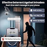 【2K HD Resolution & Clear Night Vision】 Equipped with 2K ultra-clear resolution, this outdoor camera ensures sharp, detailed footage day and night. The built-in infrared night vision technology provides clear visibility even in low-light conditions. Plus, with a 120° wide-angle lens, you get a broader field of view, covering more area and eliminating blind spots. 【Free Cloud Storage & SD Card Support – Safeguard Your Footage】Take advantage of free cloud storage with no additional subscription fees, ensuring your crucial recordings are always secure and accessible. For added flexibility, the camera also supports local SD card storage (up to 256GB, SD card not included), giving you more options to store and protect your data. 【Say Goodbye to Frequent Charging】With built-in solar panels, this outdoor security camera wireless continuously charges throughout the day, ensuring long-lasting, reliable performance without the hassle of frequent recharges. Enjoy worry-free, eco-friendly operation that keeps your security system up and running without interruptions. 【Quick Setup & Dual-Band WiFi – 2.4GHz & 5GHz Compatibility】Experience a faster, more stable connection with support for both 2.4GHz and 5GHz WiFi bands, minimizing lag and disconnections. The easy-to-follow setup process allows you to get your camera up and running in just minutes using the app—no technical expertise needed. 【Intelligent Motion Detection & Real-Time Alerts – Stay Informed Instantly】With advanced AI motion detection, this security camera outdoor smartly identifies movement while reducing false alerts. Receive immediate notifications on your phone whenever suspicious activity is detected, so you can keep an eye on your property from anywhere, at any time. 【Two-Way Audio – Communicate in Real-Time】Featuring a built-in high-quality microphone and speaker, this wireless outdoor camera enables seamless two-way audio through the app. Whether you're greeting visitors, speaking with delivery personnel, or warning intruders, you can communicate easily and securely from anywhere.