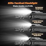 Dual LED Version: 2000 Lumens provides brighter illumination and wider lighting range in dark environments Multi Tactical Modes: Supports constant and strobe mode in single or dual light status Precision Made: Made of 6061 aircraft grade aluminium; IPX6 Waterproof; Compatible with picatinny rail; Sleek and flat design Rechargeable Flashlight: Built-in lithium battery, powered by USB-C Port(Charging cable included) Usage Duration: Single light lasts 94 minutes; Dual light lasts 68 minutes