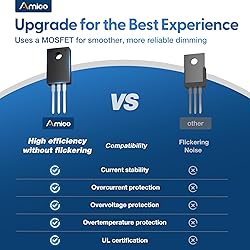 Trailing Edge MOSFET Dimmer: This dimmer controls the MOSFET's on-time to adjust voltage or current, offering smooth dimming. Compared to leading-edge dimmers, it's gentler on circuits and ideal for sensitive loads like LEDs Wide Compatibility: Equipped with trailing-edge technology, this dimmer works with 99.99% of dimmable light bulbs. Say goodbye to flickering, buzzing, and compatibility issues Smooth Dimming: Offers a seamless dimming range from 10% to 100%, no flickers or jumps. Ideal for creating a comfortable, cozy atmosphere in bedrooms, living rooms, offices, and more Silent Operation: Featuring MOSFET drivers, this dimmer eliminates buzzing and reduces electromagnetic interference (EMI) for quiet, smooth performance, perfect for noise-sensitive environments Reliable and Safe: Built with overheat and overload protection for stable, long-lasting performance. The flame-retardant shell provides added durability and safety for your home Slim & Easy Install: This dimmer is 50% thinner than standard models, fitting easily into tight electrical boxes. It's compatible with US wall boxes and supports both single-pole and 3-way wiring UL Certified: Amico's dimmer light switches meet rigorous UL high standards, suitable for residential, commercial, and office use