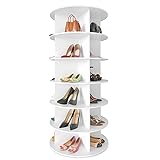 - SpaceAid 6 Tier Rotating Shoe Rack Tower, Spinning Shoe Display Lazy Susan, Revolving 360 Shoe Rack Storage Round Carousel, Vertical Handbag Rotate Shoes Closet Organization (6-Tier White)