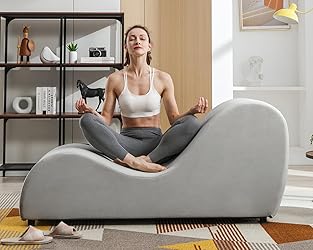 - BALUS 60" Width Yoga Sofa Chaise Lounge Chair for Adults Stretching Exercising Relaxing, Wooden Ergonomic Curved S-Shape Velvet Lounges Chairs Indoor for Living Room Apartment Home Office, Light Grey 【Elevate Your Comfort】 Our stylish yoga chair is ergonomically designed to perfectly fit the natural curves of your body for unrivalled comfort. Whether you're resting, exercising or stretching, this BALUS yoga chaise lounge is the ideal companion. Built-in high-density foam padding provides optimum comfort. 【Robust and Eco-Friendly】 This yoga lounger is made of eco-friendly MDF, and its sturdy frame can withstand great pressure. With its durable construction, you can practice yoga with confidence. With a maximum weight capacity of up to 400 lbs, it is suitable for yogis of all shapes and sizes. 【Handpicked Upholstery Choice】 Our chaise lounge chairs are upholstered with high quality PVC upholstery, which is known for its breathability, abrasion resistance and dust resistance. Whether you are working out or relaxing, the chaise lounge chair will bring great comfort to your skin. Easy to clean, you can wipe off whatever spills on it. 【Portable Furniture】 Our ostrich chaise lounge measures 60.6''D×17.7''W×31.7''H and weighs 54.3 lbs. Designed to be lightweight, the Yoga Sofa requires no tools to assemble and is easy to set up, move and place. The relatively light weight means that when not in use, it can easily be erected out of the way in a wardrobe. 【Versatile Yoga Chair】 BALUS Adult Yoga Chair is a versatile choice for all levels of yoga enthusiasts. Whether you want to improve flexibility, focus on backbends or practice inversions, this elegantly curved indoor chaise lounge chair will meet your needs. It also comes with two included flex cushions for added comfort.