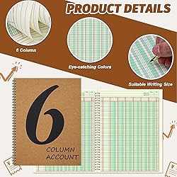 - 6 Column Ledger Book 8.5X11 Inch Columnar Pads Spiral Columnar Notebook Analysis Pad 6 Columns Accounting Ledger Book for Small Business Personal Use Ledger Book Spiral Kraft Paper Cover 100 Pages Color:Kraft color Material: Kraft cover,Paper Size: 8.5*11Inch Quantity: 3 Application:Finance,Office