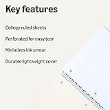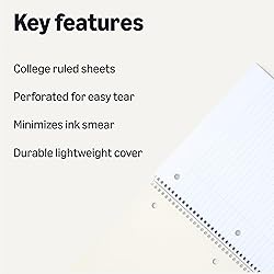 5-pack of college ruled spiral notebooks for efficient note-taking and writing; ideal for school, office, and home use 70 sheets per notebook; college ruled lines and perforation for easy removal Smooth paper quality helps reduce ink smearing Paper cover for durability and protection Dimensions: 10.5 x 8 inches