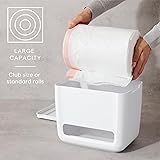 READY TO ROLL: A large compartment fits club sized or standard rolls of 13-gallon garbage bags and features a patent-pending cradle base for smooth dispensing with every pull. QUICK LOAD: Removable top tray makes reloading easy and offers additional space to stow items like sponges, bottles and brushes. STAYS PUT: Soft, non-slip feet keep the bag dispenser in place and won’t scratch or scuff your cabinet. DURABLE: Designed with heavy-duty materials to weather under sink environments without splitting or warping. STACKABLE: Top tray features an interlocking design to hold a second dispenser and save vital under sink space.