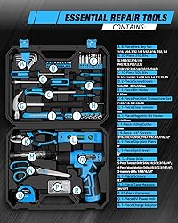 - 139-Piece Tool Set With 8V Cordless Drill, General Household Drill Set for Home Repairs, Handyman, DIY Projects