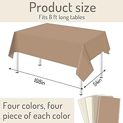 Package Includes: The package comes with 16 pcs tablecloth, which are sufficient for you to use and replace Neutral Color: Our table covers are designed in versatile neutral tones, such as beige, nude, and cream, seamlessly blending with various decor themes, ensuring a cohesive and elegant look for any event Measurement: Each tablecloth measures 54 x 108 inches, it is a proper size and can easily match with your tables, desks and more Reliable Material: These table covers are made of good quality plastic material, which are sturdy to use, the surface is easy to clean, can be used once or repeatedly Wide Applications: Our tablecloths are perfect decoration to your various parties, they can be applied for both indoor and outdoor, you can use them as table decoration, photo props, etc., can be a big hit to your party
